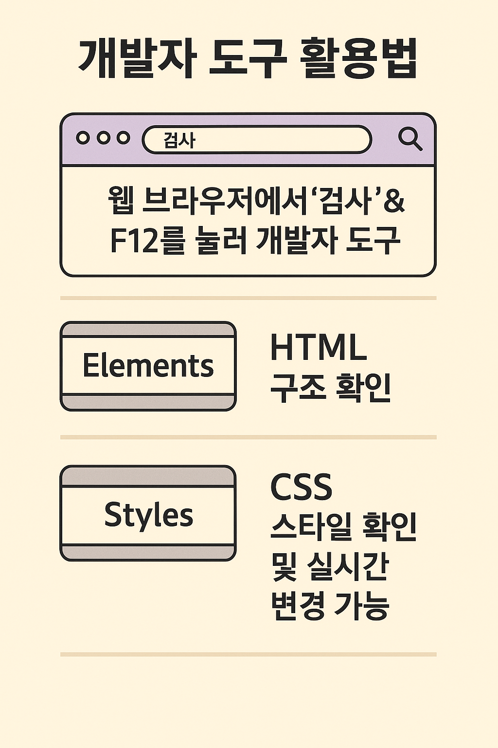 웹 브라우저에서 '검사' & F12를 눌러 개발자 도구